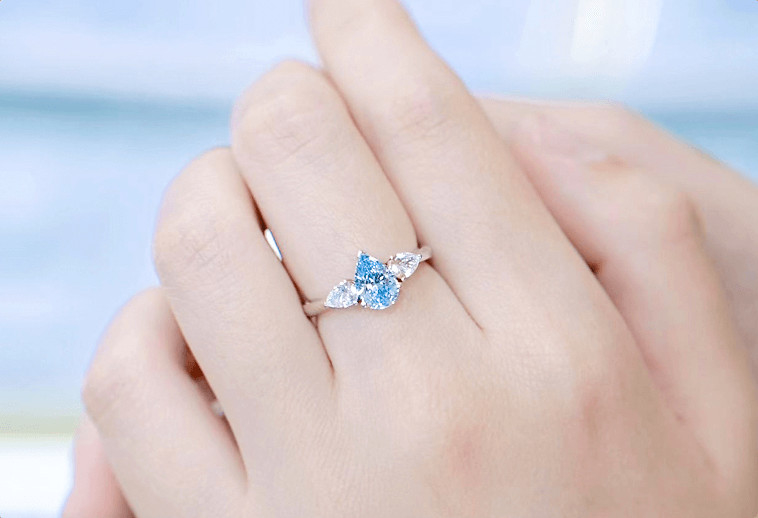 گواهینامه ی آزمایشگاهی گلبرگ آبی الماس جواهرات گشوده الماس حلقه ی الماس سفارشی