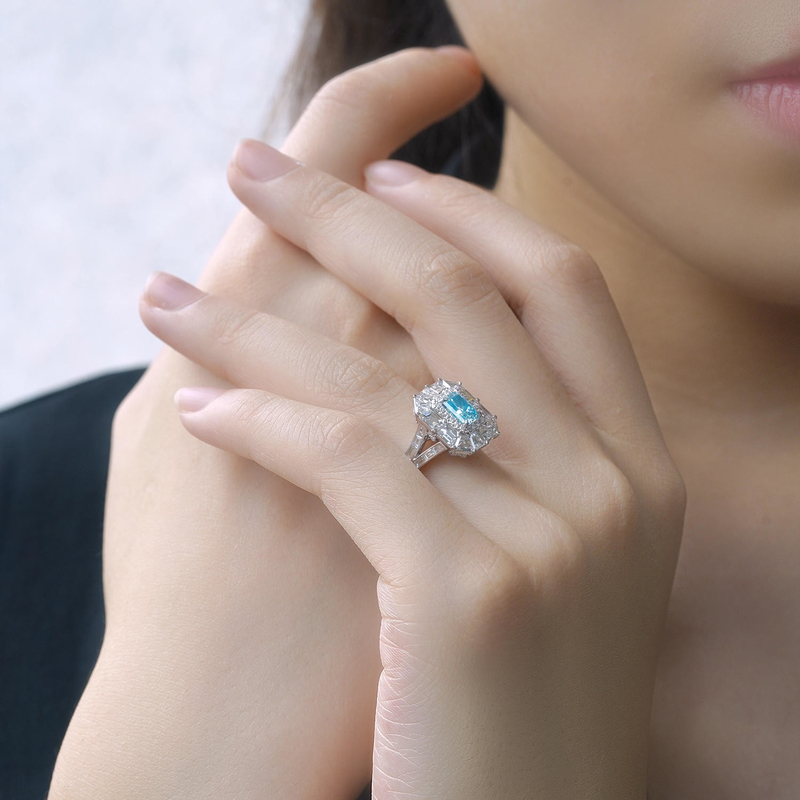 مدارک آزمایشگاهی الماس جواهرات آبی تابناک الماس سفارشی ساخته شده الماس فانتزی حلقه عروسی