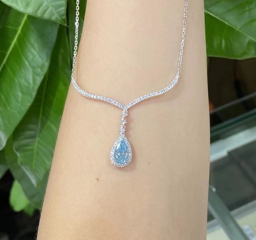 لابراتوار پرورش داده شده الماس آبی گلابی درخشان برش 18k طلایی معلق سفید IGI گواهی جواهرات خوب