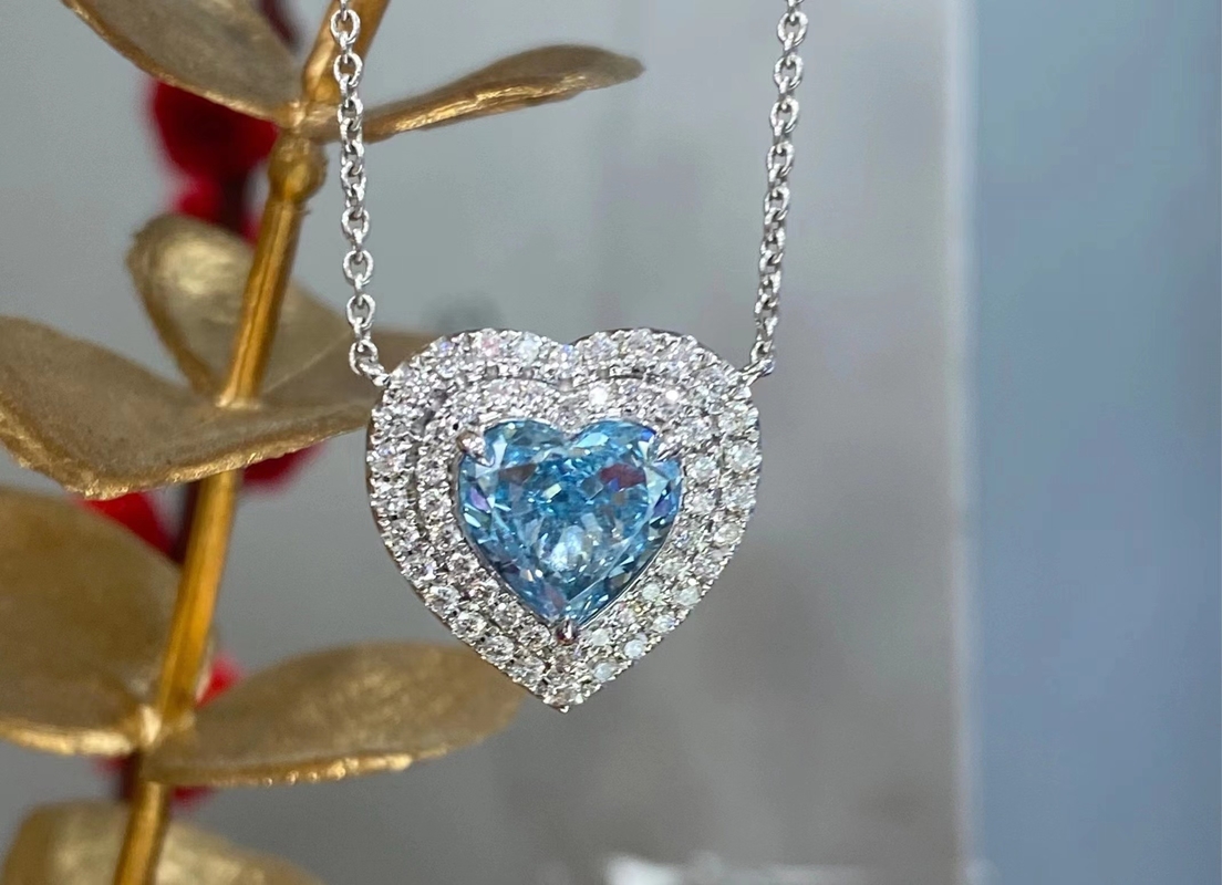 قلاده ی الماس قلاده ی الماس لابراتوار الماس های رنگی قلب برشجواهرات نامزدی