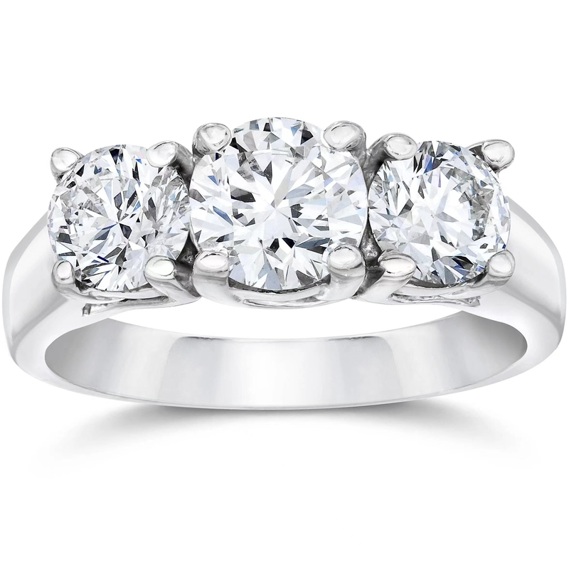 الماس های تولید شده در آزمایشگاه جواهرات سبک کلاسیک سه سنگ شکل گرد سفید حلقه های نامزدی حلقه های الماس دور برای مهمانی و سالگرد
