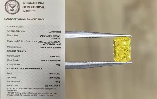 الماس های مصنوعی گواهی شده الماس های مصنوعی 1CT Radiant Cut Lab الماس Vs1 الماس الماس زرد