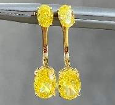 گوشواره کلاسیک زرد VS الماس های بیضی شکل آزمایشگاهی 18 عیار طلای زرد، EX